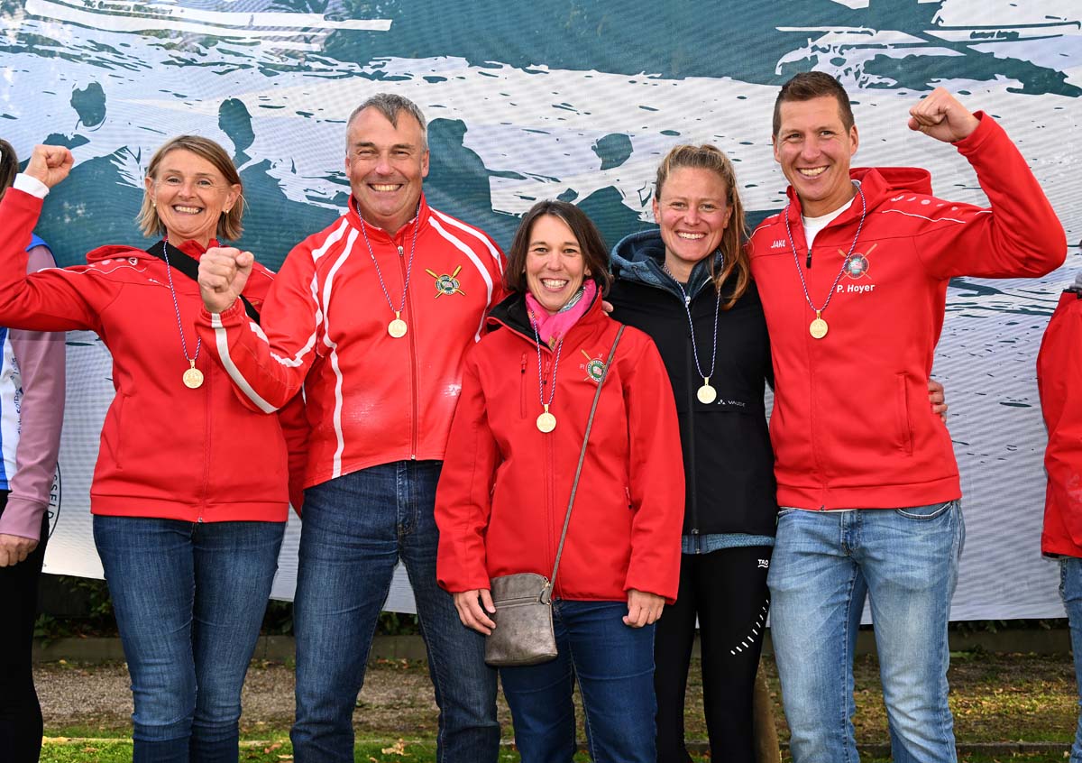 - Lena Hartwich, Patrick Hoyer, Anna Prinz, Christopher Schneider und Steuerfrau Dorothee Lang (RG Wiesbaden-Biebrich) in Mixed Masters C