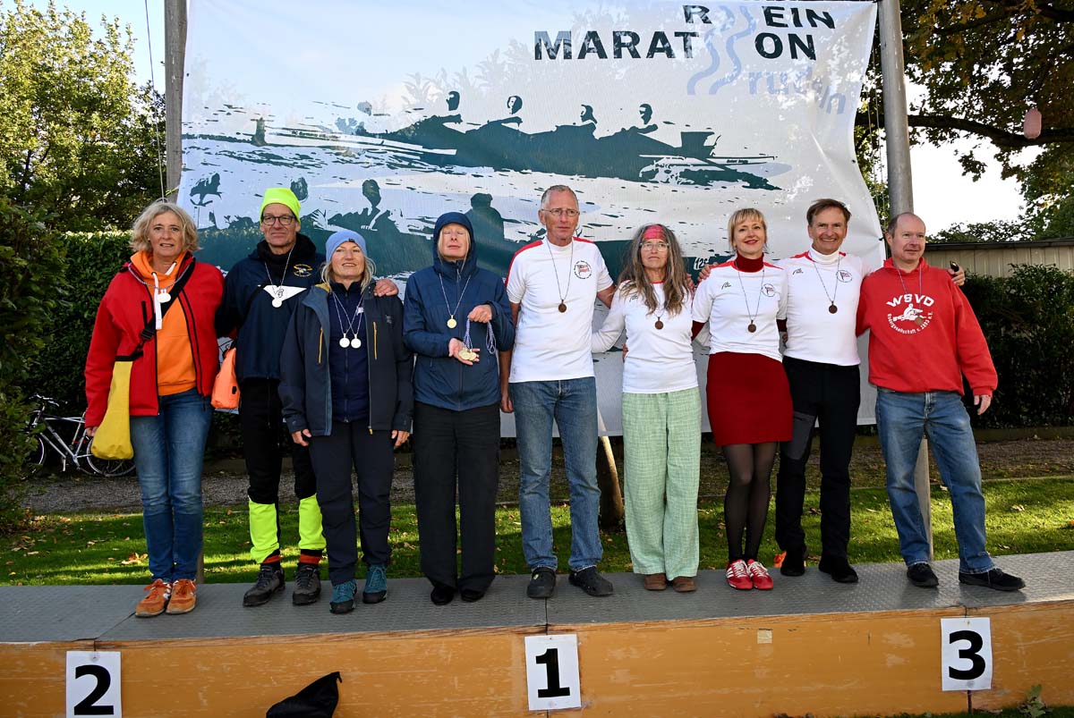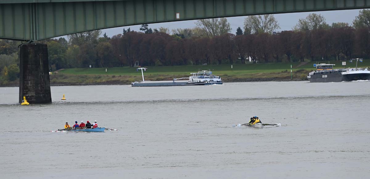 In der Woche vor dem 54. Rheinmarathon am 4. Oktober 2025 habe ich täglich den Wetterbericht verfolgt. Je näher der Tag rückte, desto schlechter wurden die Vorhersagen: Regen und starker Wind waren angesagt. Aus den Berichten der Vorjahre wusste ich bereits, dass das Wetter bei diesem Event selten freundlich ist. Auf den 42,8 Kilometern von Leverkusen nach Düsseldorf erlebt man oft alle drei Jahreszeiten an einem Tag. Und genauso war es auch diesmal: Es regnete zeitweise in Strömen, der Wind erreichte in Böen Sturmstärke und drückte uns trotz der Strömung rheinaufwärts. Hohe Wellen schlugen ins Boot – und doch zeigte sich zwischendurch auch mal die Sonne.