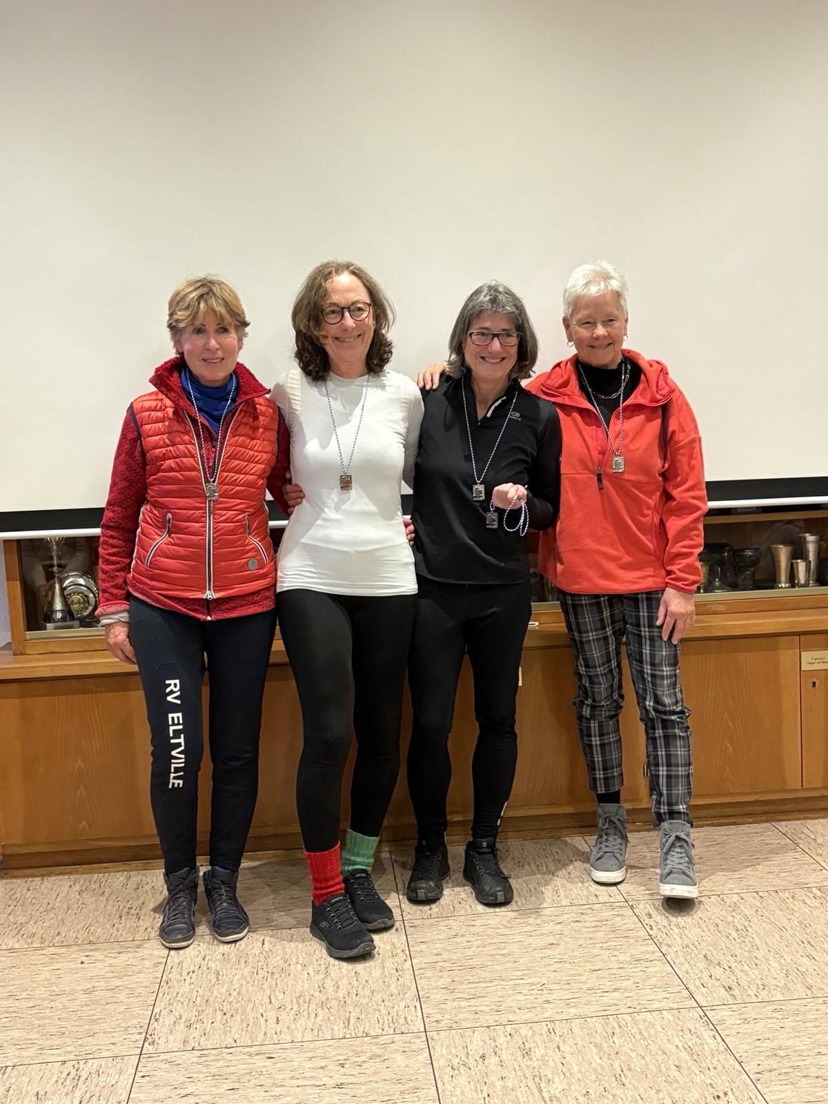 - Das Frauenteam (4x+, G) mit Ute Bachmann, Renate Pieper-Swoboda, Anke Pflüger, Dagmar Steinberg und Steuerfrau Annette Quirin hatte keine direkten Gegnerinnen, musste aber eine Zeitvorgabe schlagen. In 21:45 Minuten erreichten sie das Ziel – ganze 1:45 Minuten schneller als gefordert. Ein souveräner erster Platz.