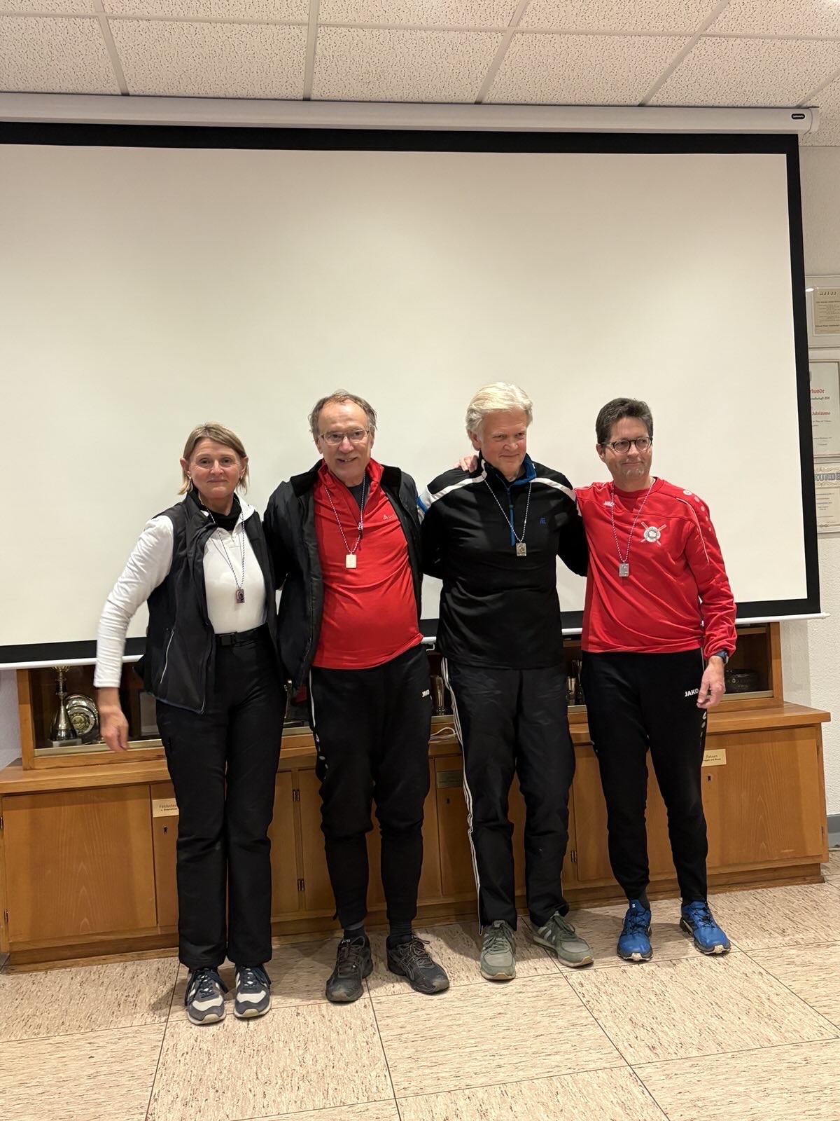 - Auch das Herrenteam (4x+, G) mit Markus Müller, Joachim Schad, Christoph Steden und Christian Zeh, gesteuert von Lena Hartwich, trat gegen „die Uhr“ an. Die Vorgabe lag bei 22:30 Minuten – unser Team passierte jedoch in 21:12 Minuten die Ziellinie und sicherte sich ebenfalls den 1. Platz.