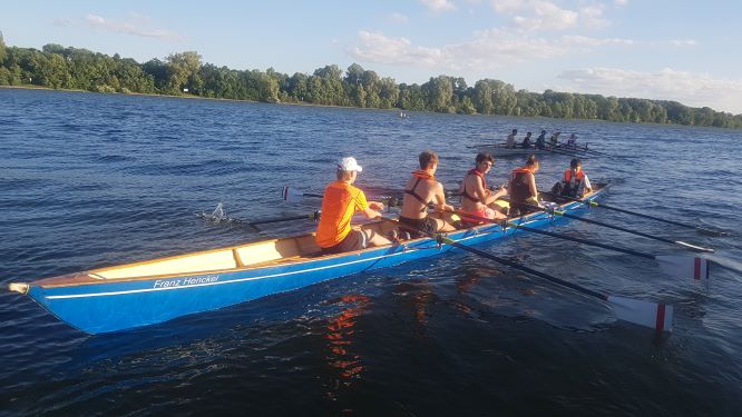 Am Montag den 29.06.2020 führte, wie im vergangenen Jahr, die Jugend der Breitensport- und der Leistungsgruppe die gemeinsame „Schools-out Fahrt“, in den Altrhein durch. Gut gelaunt starteten die Ruderer*innen inklusive zwei Erwachsene Trainer*innen in den Budenheimer-Altrhein. Bei den heißen, sommerlichen Temperaturen gab es im Altrhein leichte Technikübungen bevor sich die Jugendlichen genüsslich mit viel Spaß in das Wasser stürzten. Nachdem alle gut abgekühlt waren, ging es mit musikalischer Begleitmusik aus der mobilen „Sound Box“ zurück nach Eltville an der Rudersteg. Zur Belohnung wurden alle zu einem leckeren Eis in der Eisdiele eingeladen.