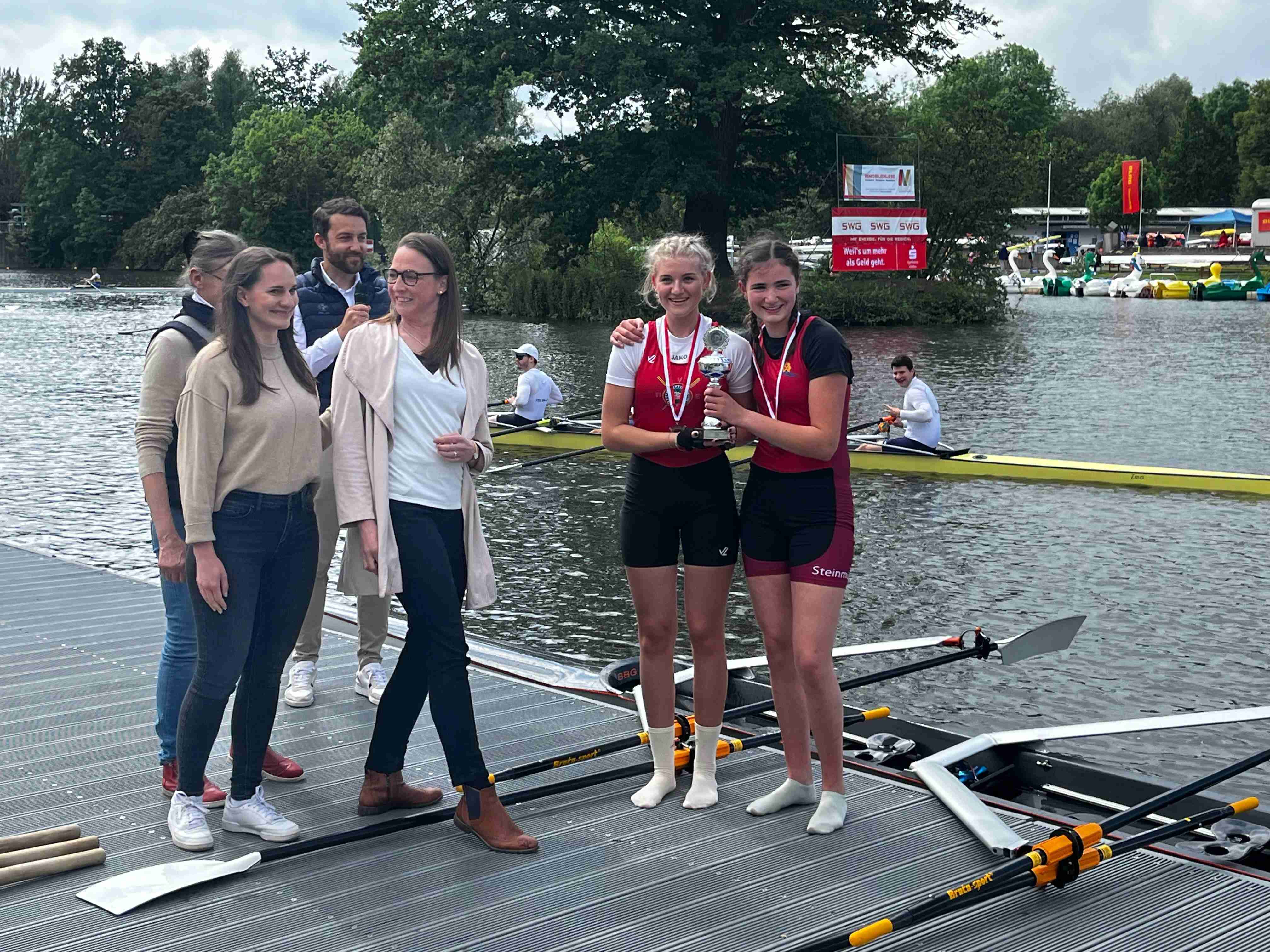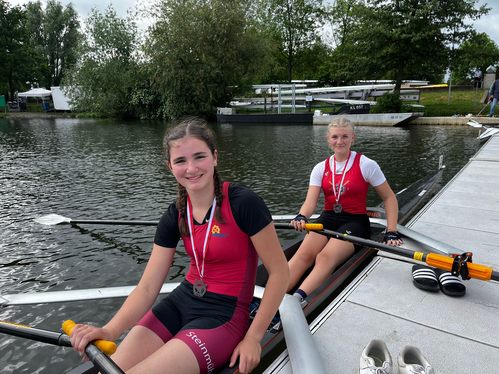 Direkt zwei Wochen später traten Sofiia Krasnova vom RVE mit Lilu Schmidt von der RuS Steinmühle gemeinsam auf der 112. Gießener Pfingstregatta am 18., 19. und 20. Mai 2024 im Doppelzweier erfolgreich an.