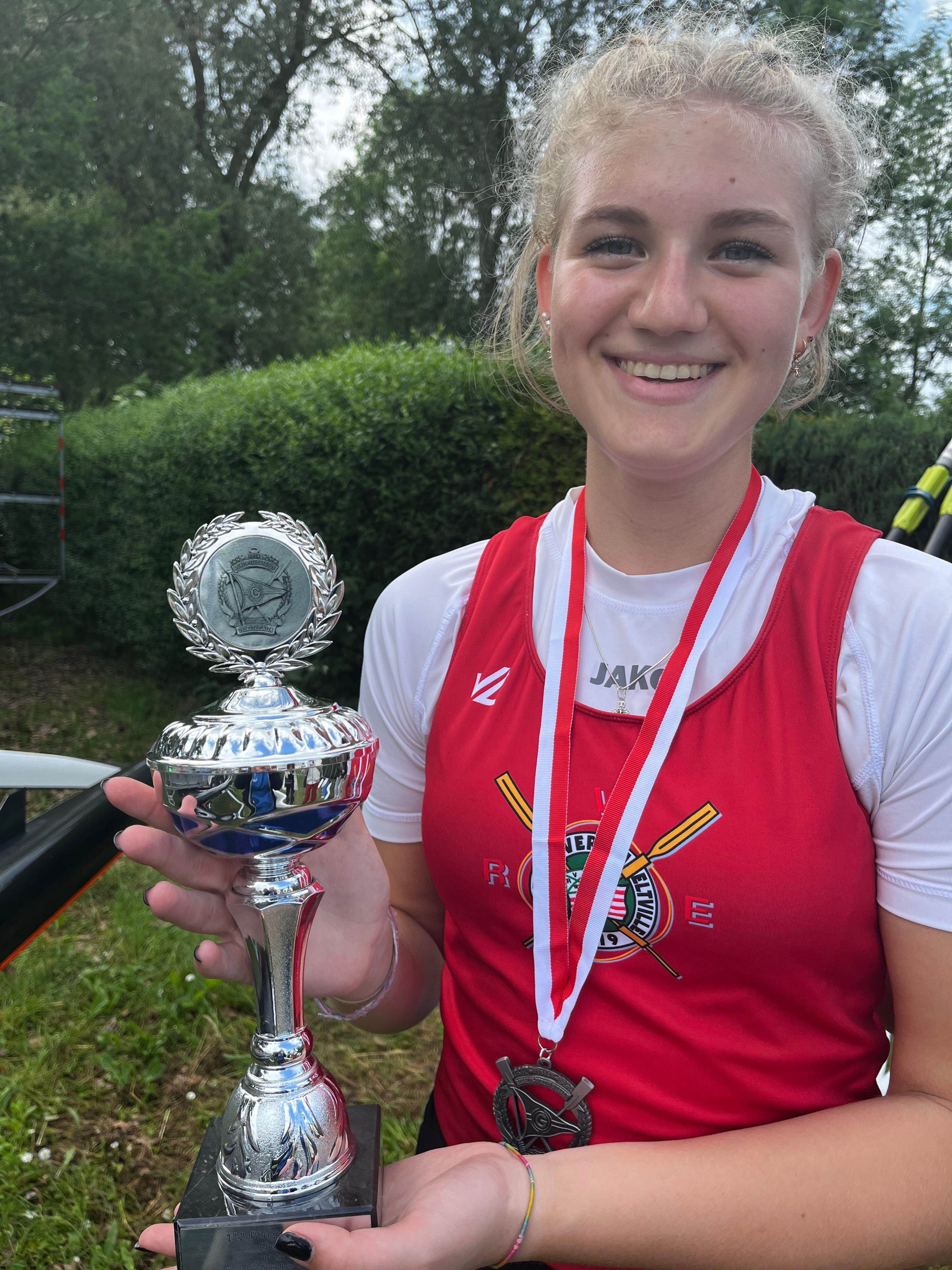 Zur Vorbereitung auf die mehrtägige Pfingstregatta in Gießen ging es am Samstag, den 04.05.2024 auf die Offenbacher Regatta. Dort belegte Sofiia Krasnova (2009) auf 1000 m im Rennen 17 der Altersklasse JF 1x B LG II den 3. Platz mit einer Zeit von 3:59.6 gegenüber der Erstplatzierten Lilu Schmidt vom Ruder und Sport Steinmühle mit einer Zeit von 3:53.4. Im 2. Rennen am Sonntag den 05.05. verbesserte sich Sofiia und kam mit einer Zeit von 3:58 auf den 2. Platz vor Lilu Schmidt mit 3:50.5 im Rennen 217 JF 1x B I/II Abteilung 1. Durch das gute Abschneiden in diesen Rennen erhielt Sofiia das Angebot, gemeinsam mit Ihrer Gegnerin Lilu Schmidt auf der Pfingstregatta in Gießen im Doppelzweier zu rudern.