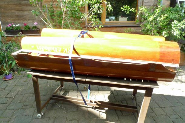 Auf was für Ideen Ruderer alles kommen. Die Rosenstadt ein 2er Holz-Rennboot, wird nun in Mainz zu einem zerlegbaren Wanderboot umgebaut. Das hat den Vorteil, dass das Boot einfach u.a. auf dem Autodach zu transportieren ist. Man benötigt keinen Bootstrailer. Was der Käufer mit den Skulls macht, konnten wir leider nicht in Erfahrung bringen.